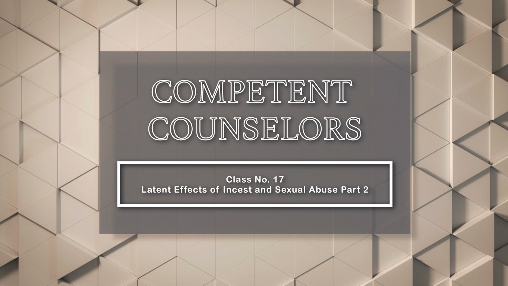A detailed continuation of Class #16 Part I. Class # 17 focuses on occurrence, latent effects, and spiritual implications. The unresolved trauma of Incest and Sexual Abuse, particularly in the lives of girls and women, can shape their worldview, perspectives on love, trust, authority, forgiveness, spiritual growth and self-esteem.